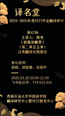 2024年4月至5月译者参与了四川省语言基地翻译“四川美术学院美术专业学位研究生教学案例库”汉英翻译项目。本次翻译实践文本《新媒体雕塑》一书摘自该翻译项目中的教材版块。该书由四川美术学院雕塑系跨媒介工作室张增增老师撰写。张增增老师为四川美术学院教师和青年驻留艺术家,是中国雕塑学会会员,重庆雕塑学会理事,现任教于四川美术学院雕塑系跨媒介工作室。