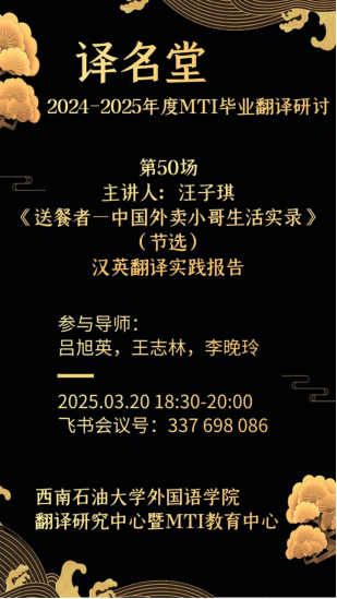 本次研讨聚焦于《送餐者——中国外卖小哥生活实录》的案例分析部分。三位指导老师对案例分析提供了详细的修改意见,让译者能够更加一阵见血地指出分析要点,显著提高了文体分析能力与处理能力。