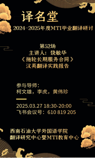 通过这次译名堂,我深刻地意识到,自己在翻译能力以及理论结合实际能力上的不足。