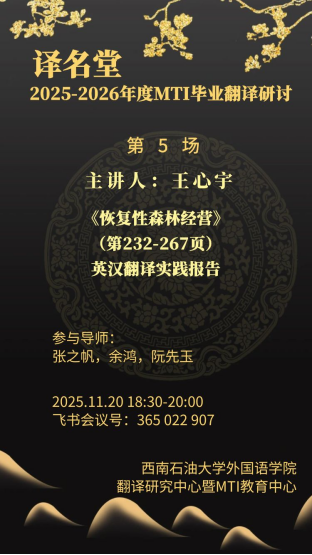 在本次“译名堂”毕业翻译研讨会中,张之帆、阮先玉、余鸿三位老师的悉心指导不仅显著提升了我的译文质量,也让我对林业科技类文本的翻译有了更深层次的理解。我深刻体会到,在处理此类专业文本时,需特别注意以下几点:首先,面对专业术语或结构复杂的句子,应适当采取增译的翻译技巧,将隐含信息显化,从而准确传达原文的专业内涵,避免给读者造成理解障碍。其次,翻译过程中不能机械套用词典释义,而应结合上下文语境,把握词语在具体情境中的真实含义,进而选择最为贴切的目的语表达。最后,我意识到自己在译文流畅性方面仍有提升空间。优秀的译文应当摆脱源语言结构的束缚,通过灵活调整句式、优化汉语表达,使译文更契合中文的表达习惯,提升整体可读性。