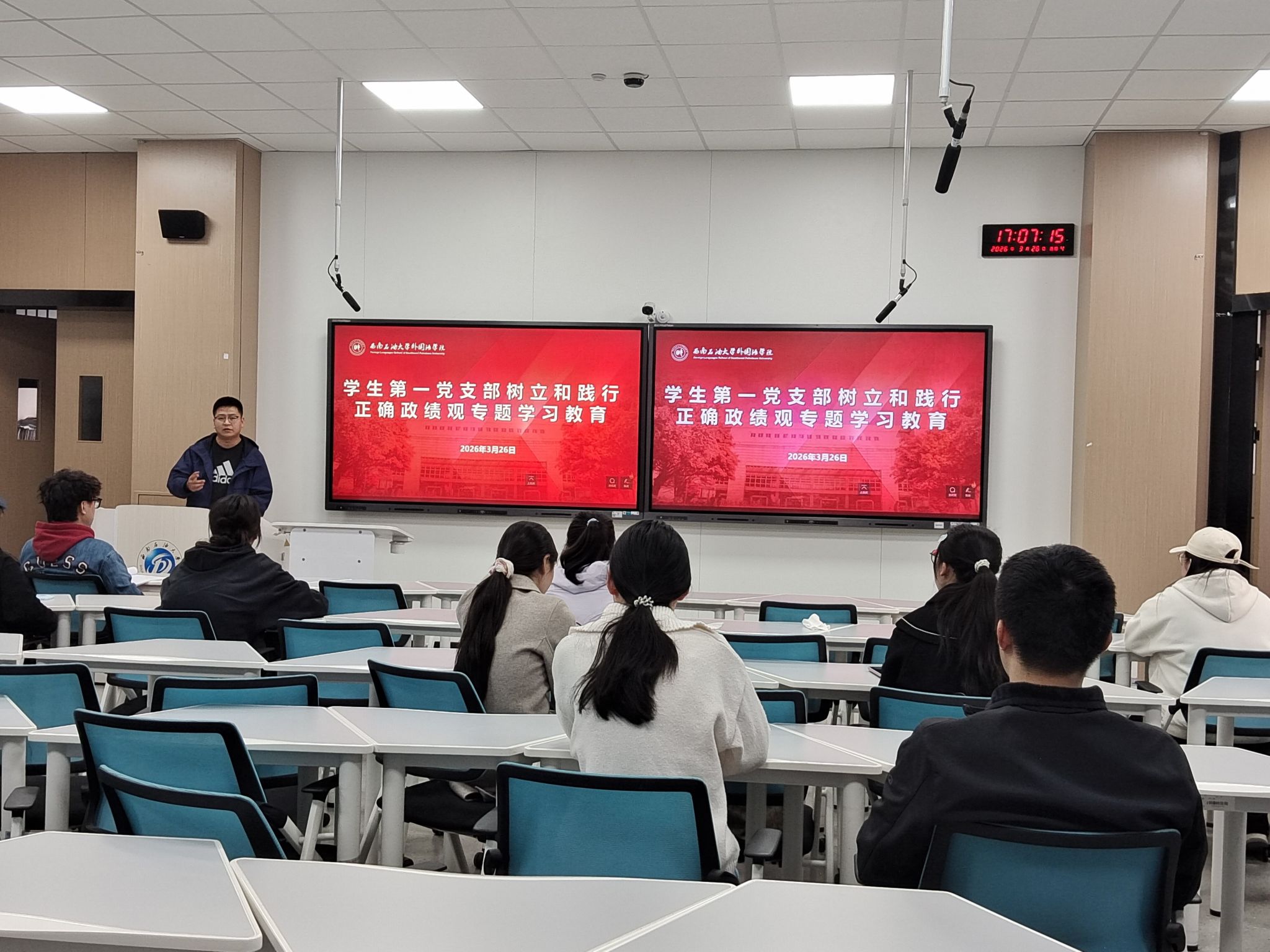 为深入学习贯彻习近平总书记关于树立和践行正确政绩观的重要论述,引导青年党员锤炼党性修养、涵养务实作风,3月26日下午,外国语学院学生第一党支部于思学楼A108开展树立和践行正确政绩观学习教育。此次会议由支部书记李飞主持,支部全体党员参加。