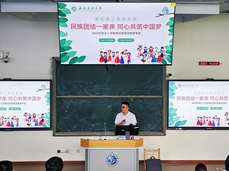 为深化2024级新生对民族团结重要性的认识,促进多元文化的和谐共生,9月11日,我院于思学楼B210顺利开展民族团结专题教育。学院特别邀请了党委学生工作部艾尼扎提老师担纲主讲,全体2024级新生参加了本次讲座。