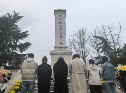 随后,党员们缓步走向纪念碑,向英烈敬献鲜花,以寄托对革命先烈的无限追思。随后,全体党员面向纪念碑肃立,默哀一分钟。此刻,陵园内松柏静默,春风低吟,唯有对英雄的敬仰与怀念在心头激荡。