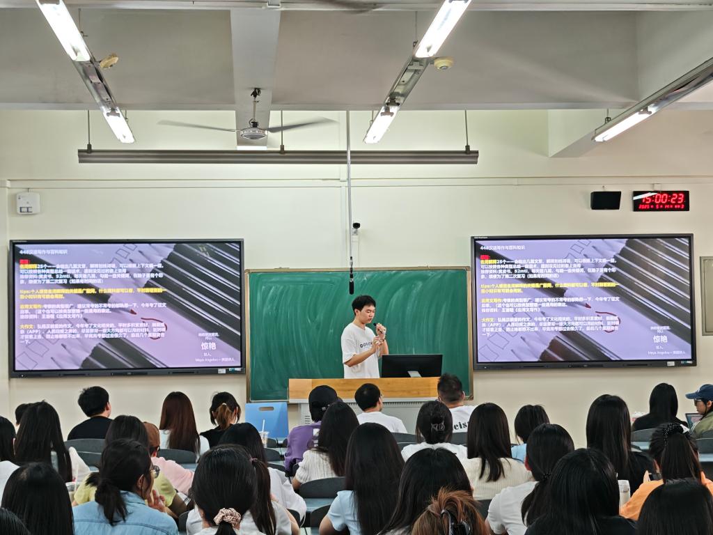 在考研动员环节,李飞老师介绍了当前考研趋势和本院考研情况,希望同学们通过备考不断深化专业知识,拓展发展空间,鼓励同学们抓住机会,积极备考。史玉曦老师分享了个人求学经历,提醒同学们慎重选择考研专业,建议大家结合自身兴趣和职业规划来选择报考。