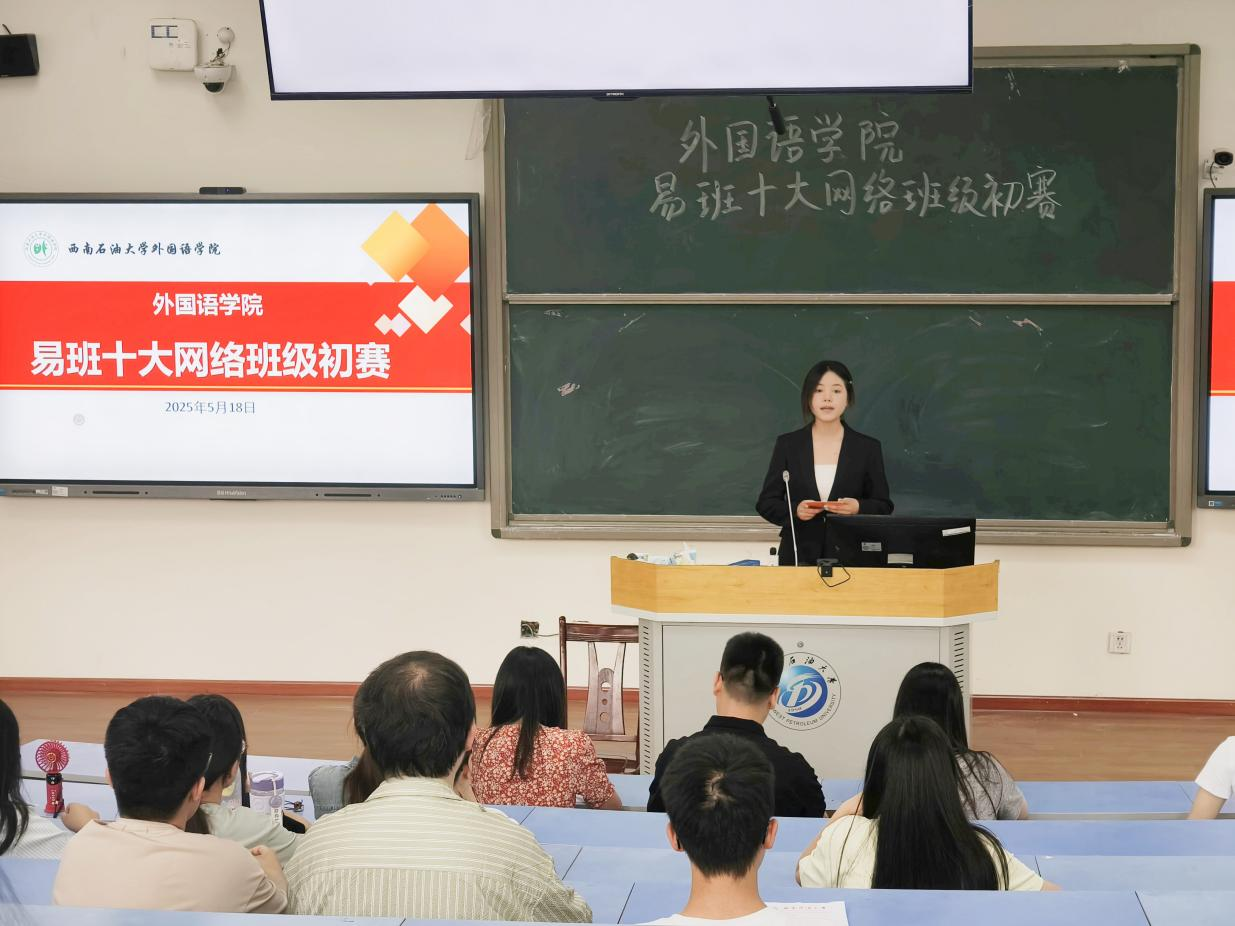 5月18日晚,我院2025年易班十大网络班级评选初赛在思学楼B210进行。辅导员李飞、史玉曦、陈泓利及百余名学生代表共同参加了本次活动,6个网络班级通过易班平台展开了数字化育人成果的精彩对决。