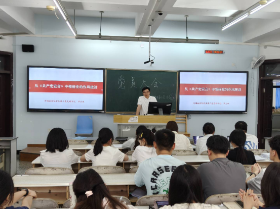 5月23日,为深入贯彻中央八项规定精神学习教育,学院学生第三党支部在思学楼A307组织开展了支部书记讲党课学习活动,支部书记罗文双以“从《共产党宣言》领悟党的作风建设”为主题作了辅导报告,支部全体同志参与学习。