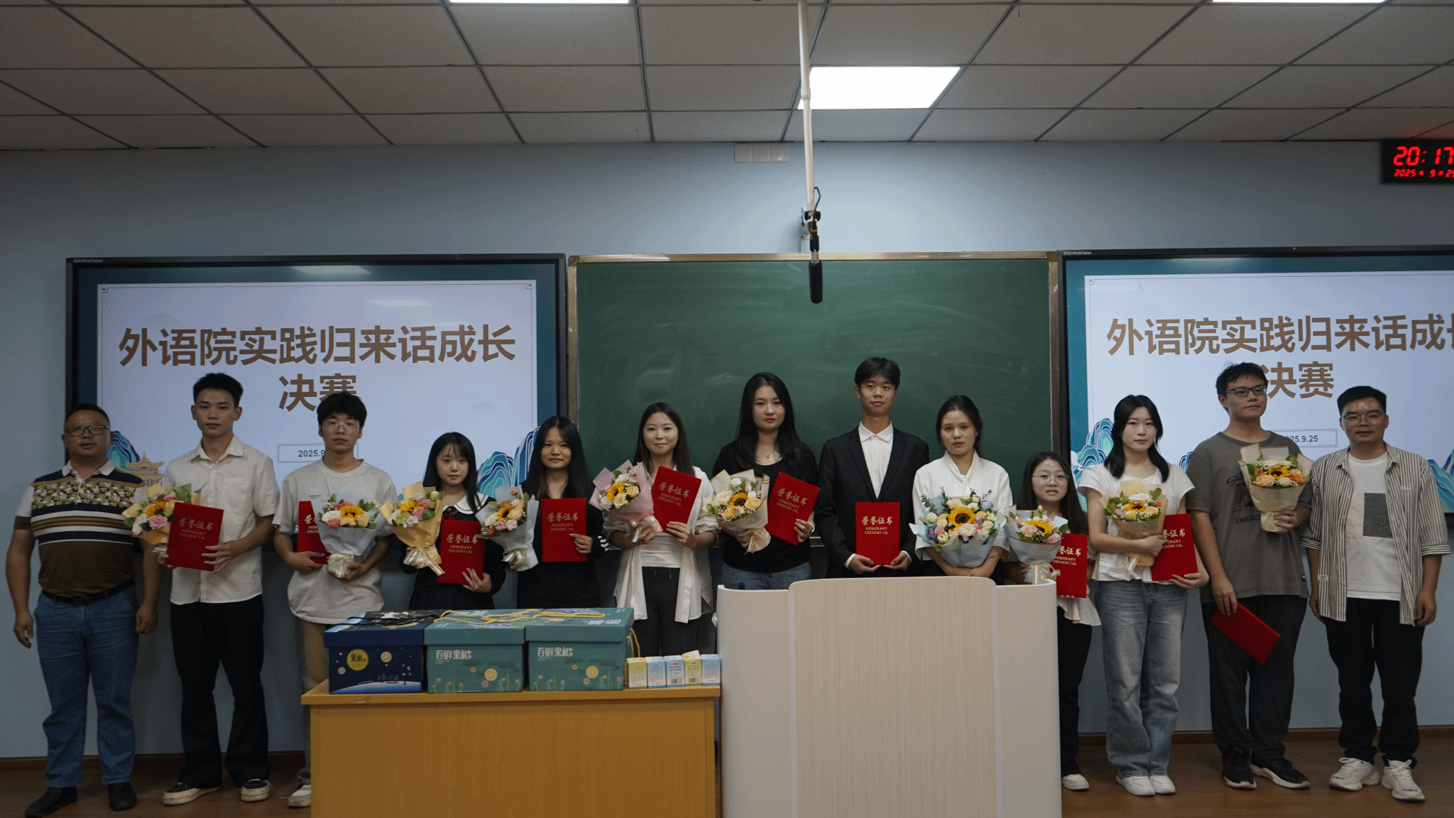 本次决赛集中展示了我院2025年暑期“三下乡”实践的丰硕成果,彰显了我院学子深入基层、服务社会的青春风采。外国语学院将持续深化实践育人体系建设,引导更多青年积极投身实践大课堂,在实践中锤炼本领、收获成长,让青春力量在祖国需要的地方绽放光彩。