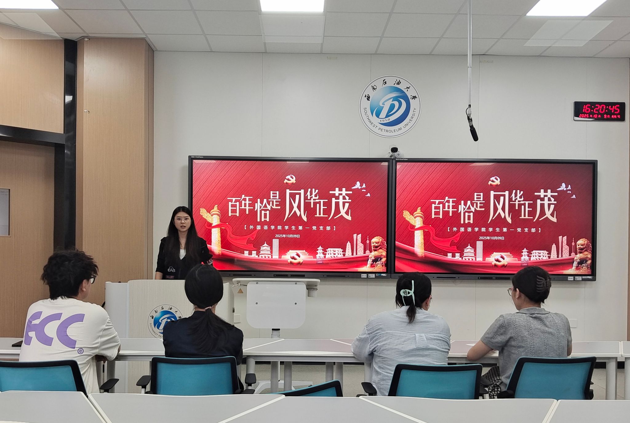 为深入推进党史学习教育,传承党的优良传统,10月9日下午,外国语学院学生第一党支部在思学楼A110开展以“百年恰是风华正茂”为主题的党组织生活会。会议由党支部书记李飞主持,支部全体党员参会。