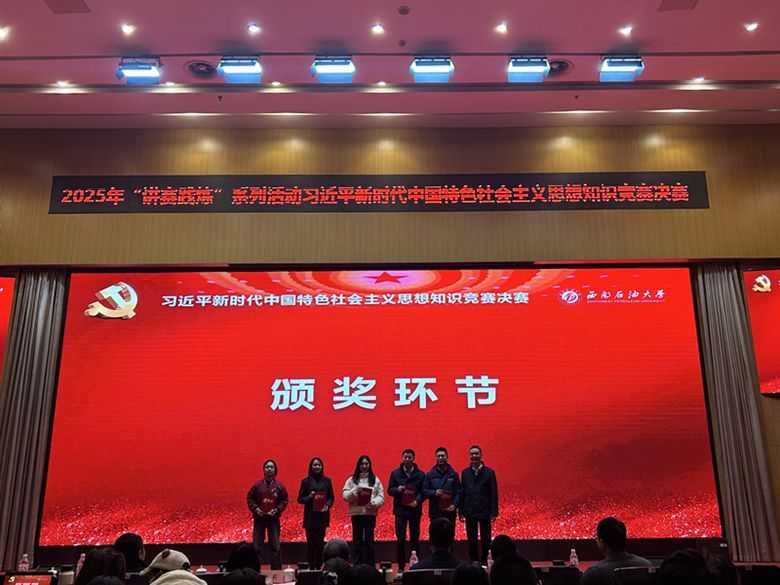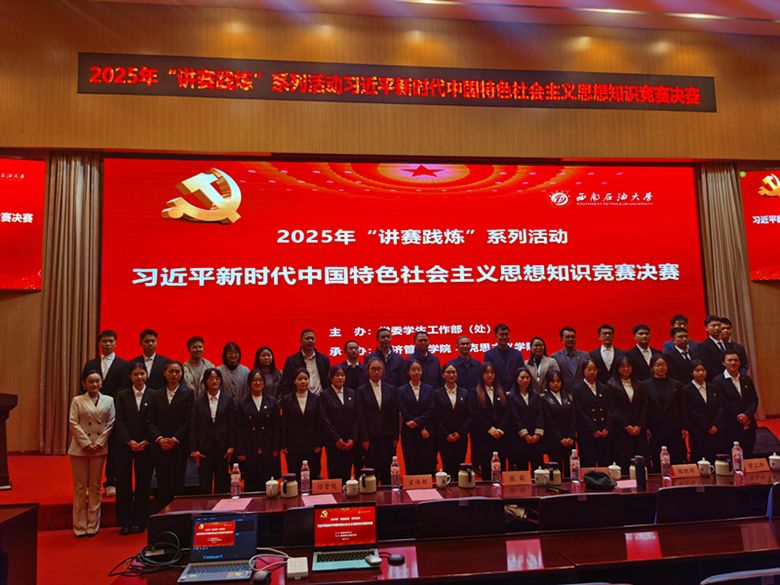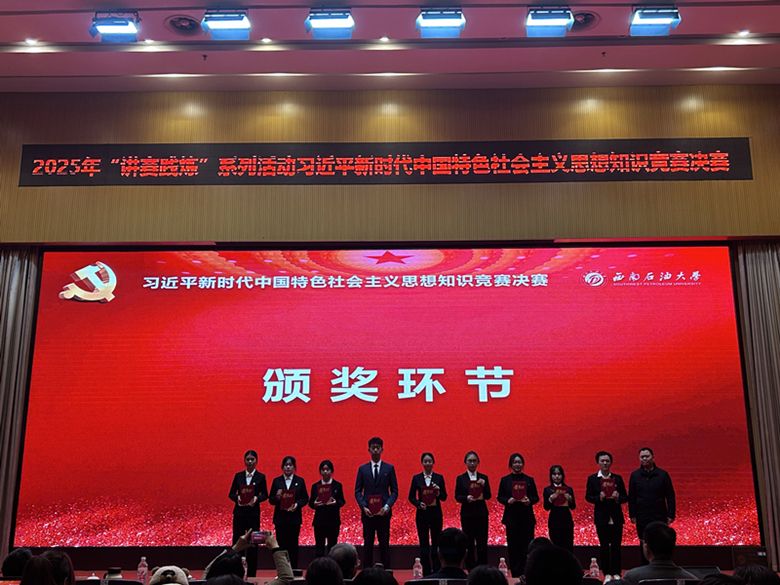 11月25日晚,西南石油大学2025年“讲赛践炼”系列活动——习近平新时代中国特色社会主义思想知识竞赛决赛圆满落幕。经过多轮角逐,外国语学院“语通天下队”凭借出色的综合表现,获得决赛一等奖,充分展现了外语学子扎实的理论素养和昂扬的精神风貌。