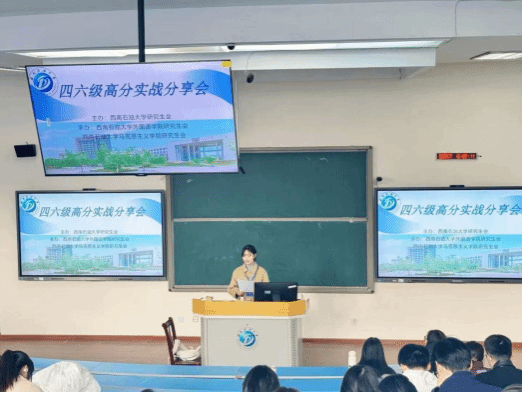 2025年11月26日,西南石油大学外国语学院与马克思主义学院携手举办了一场主题为“四六级高分实战分享会”的学习交流活动。此次分享会旨在通过优秀学生的成功经验,为正在备考英语四六级的研究生提供实用、高效的学习方法与应试策略,助力他们取得理想的成绩。