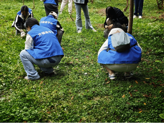 在金叶纷飞的季节里,同学们通过一场特殊的“与秋叶对话”的生态实践,不仅维护了感恩林的生态环境,更深化了对感恩内涵的理解。下午四点半,参与活动的志愿者们在感恩林入口处集合完毕。外语院青志协创新工作方法,根据秋季感恩林“落叶多、景观美、需养护”的特点,将参与者科学编为三个小组:落叶循环利用组、步道安全维护组、和常绿植被冬前养护组。各组均由青志协骨干担任组长,确保活动高效有序。
