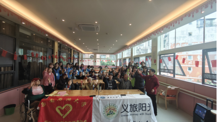 图五:志愿者和老人合照