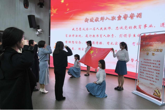 薪火传承守初心,接续奋斗担使命。随后,新进教师们在吕旭英院长的带领下进行了庄严的入职宣誓,新进教师代表宫磊做了表态发言。学院新一批的年轻老师们将会砥砺前行,不断奋进,为学院的发展再书新篇。