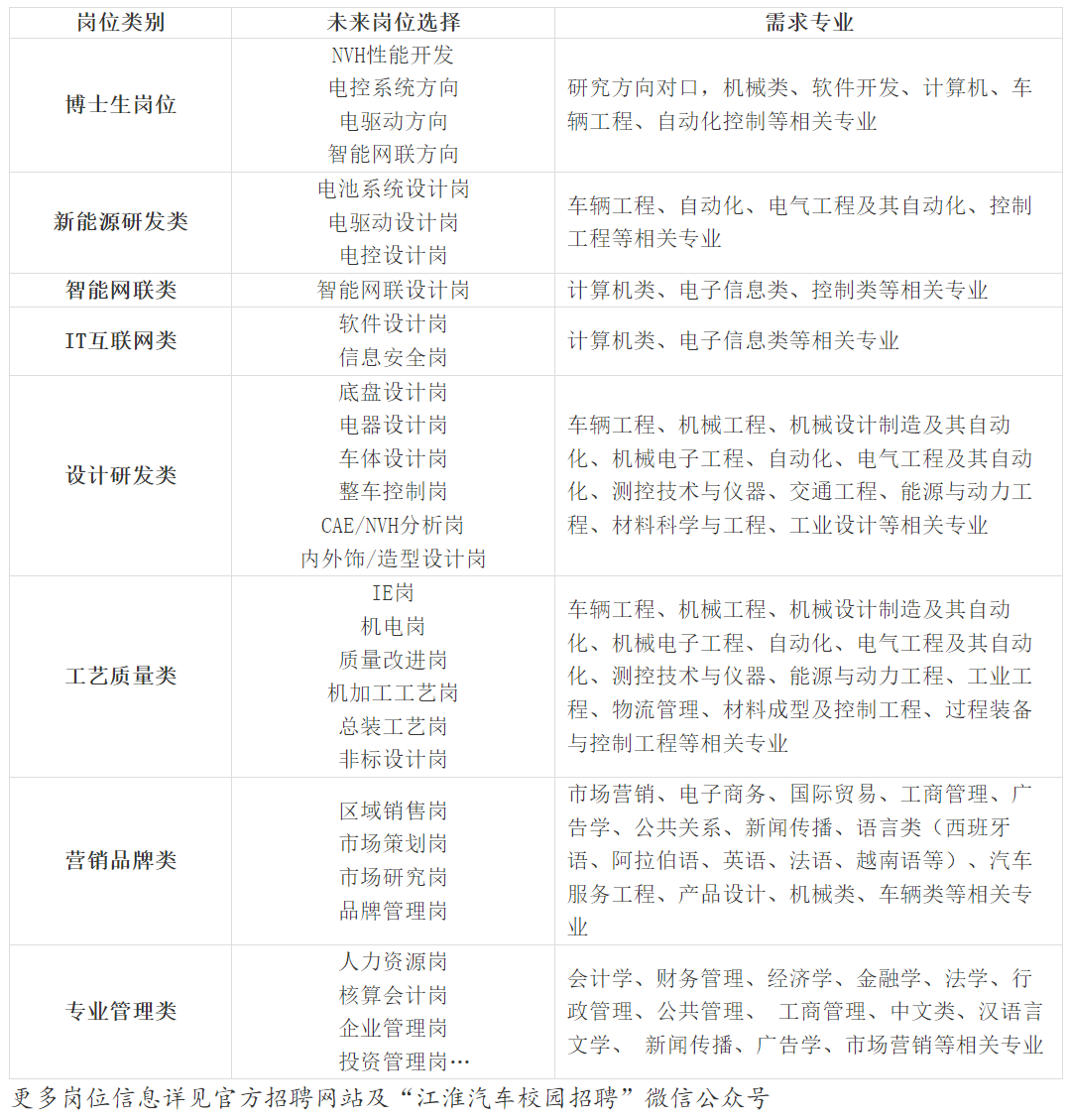 3、微信公众号:搜索“江淮汽车校园招聘”或“JACxyzp”