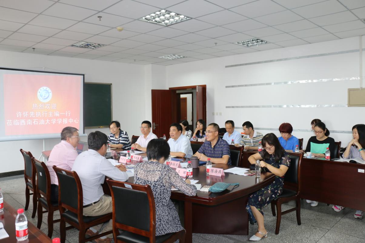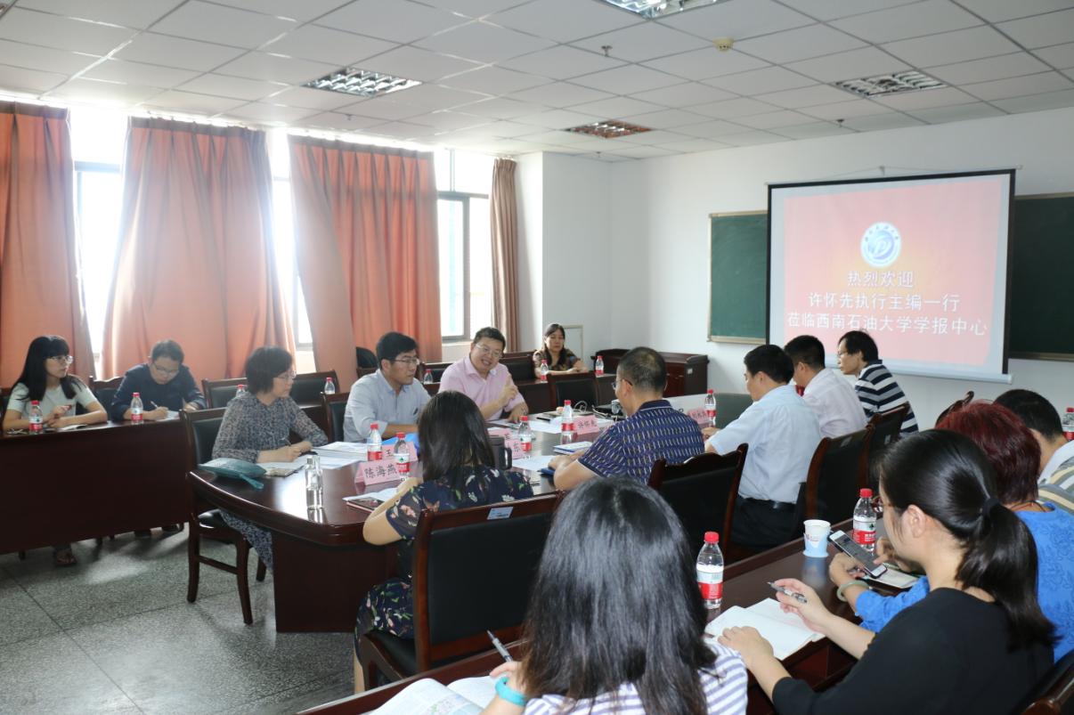9月22日下午,《石油勘探与开发》执行主编许怀先一行三人应邀来学报中心就如何提高学术期刊影响力进行交流指导。许怀先结合《石油勘探与开发》办刊经验、就如何组织高质量稿件,提高科技期刊影响因子,以及如何当好学科编辑等方面进行了经验介绍。副校长郭建春出席并致欢迎词。学报中心副主任李桂东主持本次交流会。