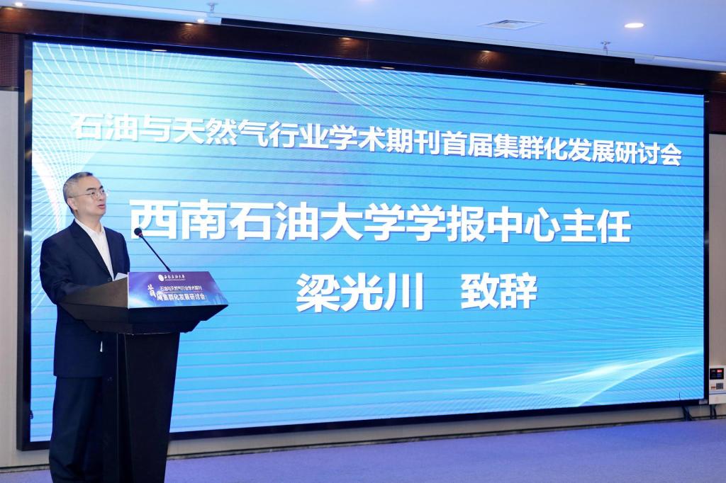 学报中心主任梁光川首先在开幕式上致辞。他谈到,从国际期刊业出版实践来看,期刊集群化发展可以降低运营成本、提高传播效率、形成集群竞争力,是科技期刊实现资源优化配置、提高学术影响力的重要途径。近年来,在国家的大力支持和倡导下,我国期刊出版机构在集群化发展方面也在开展积极探索。西南石油大学愿与各期刊一道,共建油气行业的期刊出版集群。四川省期刊协会副会长居维清代表四川省期刊协会对各位嘉宾和代表的到来表示感谢,希望与会专家学者深入探讨油气行业出版发展现状和未来趋势,研讨新形势下的油气学术期刊集群化发展模式,共同促进行业学术交流和创新,提升学术期刊的竞争力和影响力,为下一步期刊工作明晰思路和方向。科学出版社成都有限责任公司副总经理钟文希介绍了科学出版社的历史沿革以及近年来在期刊出版服务方面取得的重要成果,她希望各位嘉宾、代表以本次研讨会为契机,深入探讨油气行业学术期刊集群化发展的路径,推动学术出版向知识服务演进。