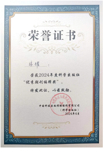 本届年会还举办了2024年度科学出版社“最美期刊封面”和“优秀期刊编辑”颁奖仪式。13种期刊当选“最美期刊封面”,26位编辑当选“优秀期刊编辑”。学报中心《油气(英文)》编辑部张耀获“优秀期刊编辑”荣誉。