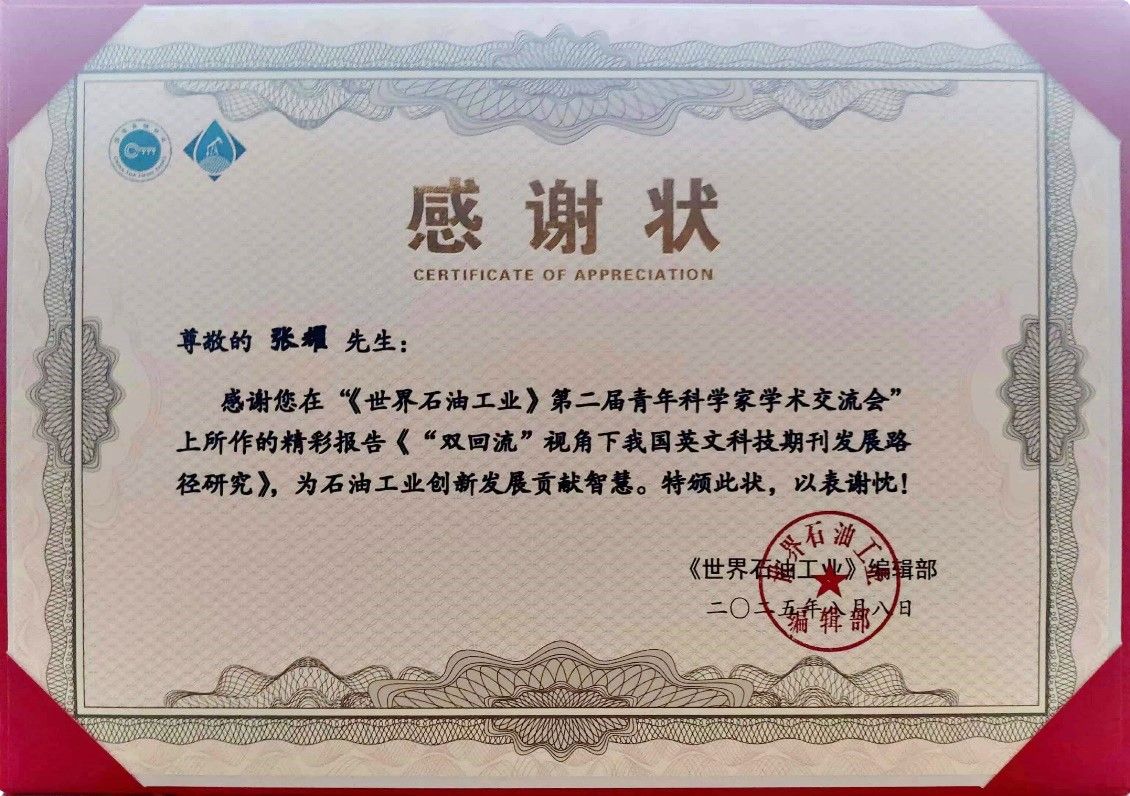本次会议设主会场及智能勘探开发、智能油气田与低碳未来、智慧管网与智能炼化三个专题分会场,并同步举办能源科技期刊发展论坛,议题设置聚焦前沿技术交流、产业创新实践及期刊发展路径等各领域核心问题。在 “能源科技期刊发展” 专题论坛,张耀受邀做了题为“‘双回流’视角下我国英文科技期刊发展路径研究”的主题报告,作为该论坛设置的8个主题报告之一,该报告展示了近年来我国科技论文外流的趋势,阐释了高水平科技论文回流的意义,总结分析了“中国科技期刊国际影响力提升计划”和“中国科技期刊卓越行动计划一期项目”实施以来我国英文期刊主要引证指标的提升情况,结合当前出版业态发展趋势提出了我国英文科技期刊服务科技论文回流的路径建议。在论坛讨论环节,来自中石油、中石化、中海油等能源企业及石油高校的代表们围绕 “人工智能赋能内容生产与确保学术价值独立性的矛盾”“AI驱动的油气期刊集群构建路径”“青年学者与期刊相互成就”展开研讨。大家一致认为,出版行业应主动适应AI技术带来的科研范式变革,构建全新的知识服务体系,共同推动AI的规范化使用。