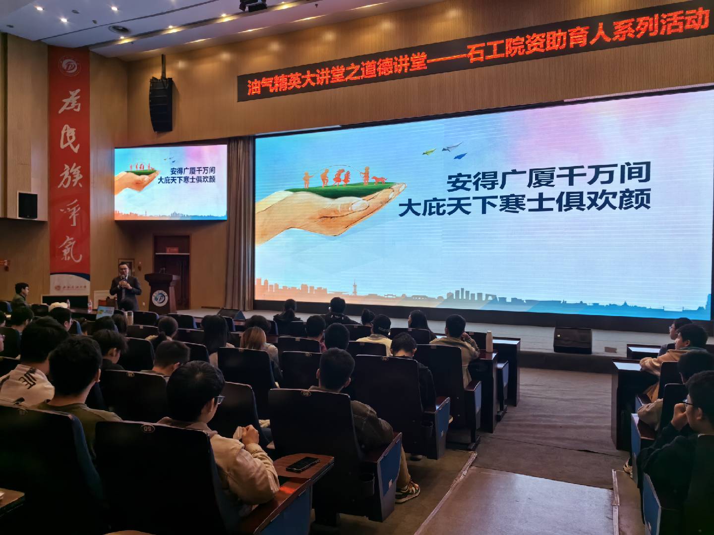 为落实立德树人的根本任务,实现资助育人,对学生开展爱国、感恩教育,培养学生的社会责任感,11月8日,石油与天然气工程学院开展了主题为“安得广厦千万间,大庇天下寒士俱欢颜”的资助育人活动主题讲座,“四川好人”“感动凉山十大人物”获评者,索玛花助学金捐赠人刘勇先生为石工院同学分享亲身经历。讲座最后,石工院党委副书记、纪委书记钱广出席了本次讲座,讲座面向石工院青马工程培训班学员、全体大一新生。