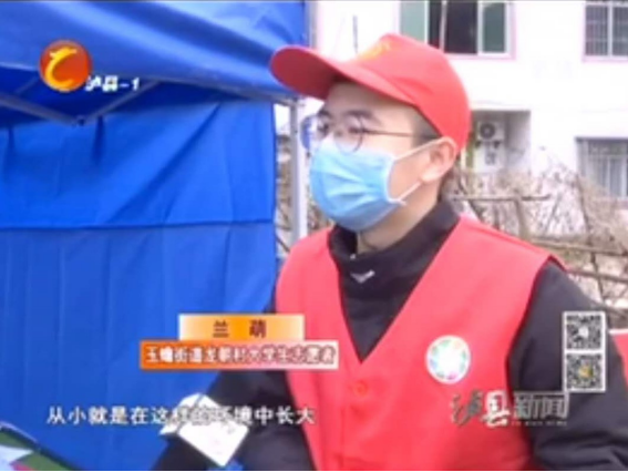 疫情爆发,各地基层一线成为了抗击疫情的第一道防线。面对疫情,一批石大学子,主动请缨,参与志愿服务,奋斗在疫情防控前线,为防疫积极贡献力量。其中,化工院防控志愿者兰萌接受四川省泸州市泸县电视台报道。