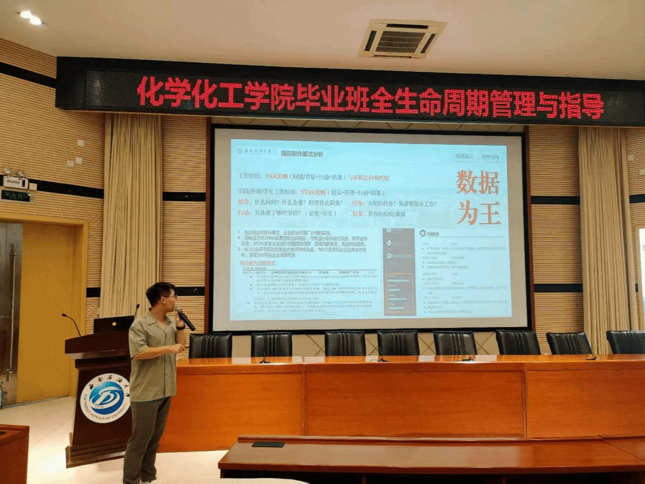 2024级研究生辅导员鹿嘉悦老师围绕实验室安全规范、防诈防盗提醒及科研生涯规划等内容展开讲解,并从心理健康角度分析了研究生初期可能面临的科研压力与焦虑情绪,引导同学们通过合理规划、积极沟通保持良好心态。2023级研究生辅导员刘斌祥老师聚焦毕业年级就业需求,开展“职场思维与成果呈现”专题讲座,从情景模拟、结构设计、报告撰写到汇报展示四个维度,系统讲解如何制作高质量工作汇报,鼓励同学们在科研与职场中培养“向上管理”意识,抢占发展先机。
