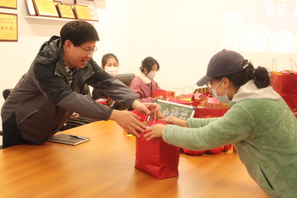 最后朱书记与刘书记共同给每位同学送上了新年大礼包。礼包中有彝族年的美食“坨坨肉”“荞粑粑”、辅导员手写的新年贺卡等礼品,寄托了学院对少数民族同学的关怀。所有彝族同学抽取学院精心制作的“福袋”。殷红的福袋虽小,但满满当当的礼品饱含了学院浓浓的情意,也展现了学院为给同学带来家乡的温暖所作的努力。极目不见故土,抬头却是同一片星空,虽然此次彝族年同学们并未与亲人团聚,但学院给予的满心关爱也让他们收获了别样的温暖。至此,欢庆彝族年活动在师生的大合影中落下帷幕。