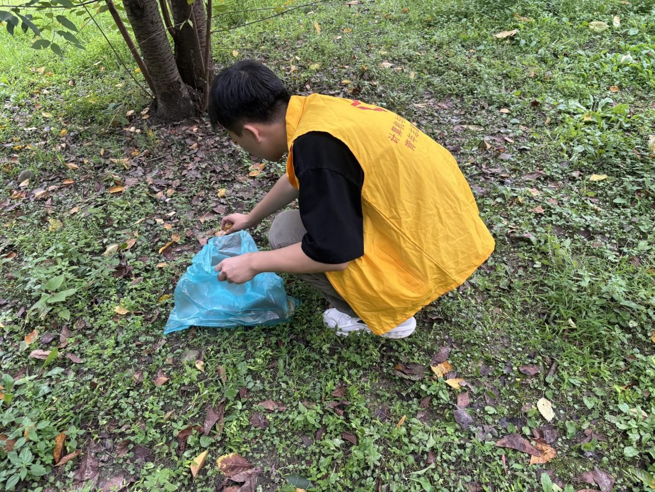 活动中,志愿者们协力清扫学子感恩林中的落叶。同学们分工明确,配合默契,一人细心地将分散的落叶用铁锹堆成堆,另一人负责撑开垃圾袋进行收集。大家认真细致,不放过任何一个角落,在劳动中展现出良好的团队协作精神和爱护校园环境的责任感。在这一边,志愿者们手持铁锹,认真清除感恩林中的杂草。大家相互协作,动作熟练,将铁锹精准插入土中,切断杂草根茎。虽然汗水浸湿了衣裳,但同学们仍然干劲十足,用实际行动为校园环境美化贡献着自己的力量。在另一边,同学们手持垃圾袋,认真搜寻并捡拾隐藏在草丛中和地面上的各类垃圾。每一个弯腰的动作,每一次细致的拾取,都体现了同学们对校园环境的珍视和对劳动实践的认真态度。