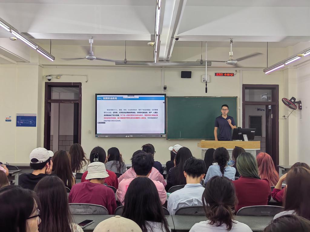 艺术学院2021级辅导员曹大伟开展“安全与法纪教育”专题课程讲解,深入分析近年来的大学生安全事故,强调安全与我们个人、家庭、学校、社会息息相关,离开了安全与稳定,任何事情都无从谈起,并提醒同学们要增强安全意识,掌握必要的安全知识和技能,要最大限度保护自己的生命健康和人身安全。