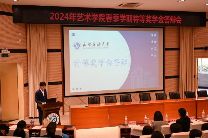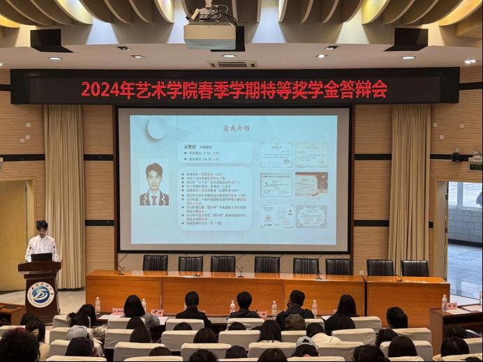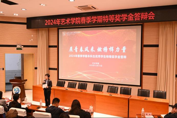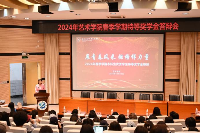 为贯彻落实立德树人根本任务,发挥榜样引领示范作用,推动学风建设工作提质增效,10月10日下午,艺术学院在思学楼A114成功举行2024年春季学期本科生优秀学生特等奖学金答辩会。学院党委副书记、纪委书记何姗,院长助理、广播电视编导教研室主任李序,教学办主任雷婷,表演专业建设负责人张婷,编导专业教研室副主任李晨,专业教师王诗秒、张晓峰担任本次答辩会评委。