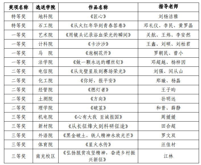 为深入学习贯彻习近平新时代中国特色社会主义思想,引导广大学生增强践行“两个维护”的高度自觉、坚定爱国奋斗挺膺担当,根据2025年学生“讲赛践炼”专项活动安排,学校组织开展了首届学思践悟中国共产党人精神谱系讲演大赛。经过院级初赛、校级复赛和决赛,现将比赛结果公布如下: