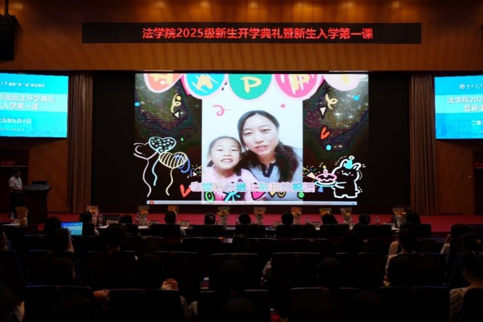 法学院将“暖心生日惊喜”融入学院开学典礼暨入学第一课,强化学生情感认同与归属感。