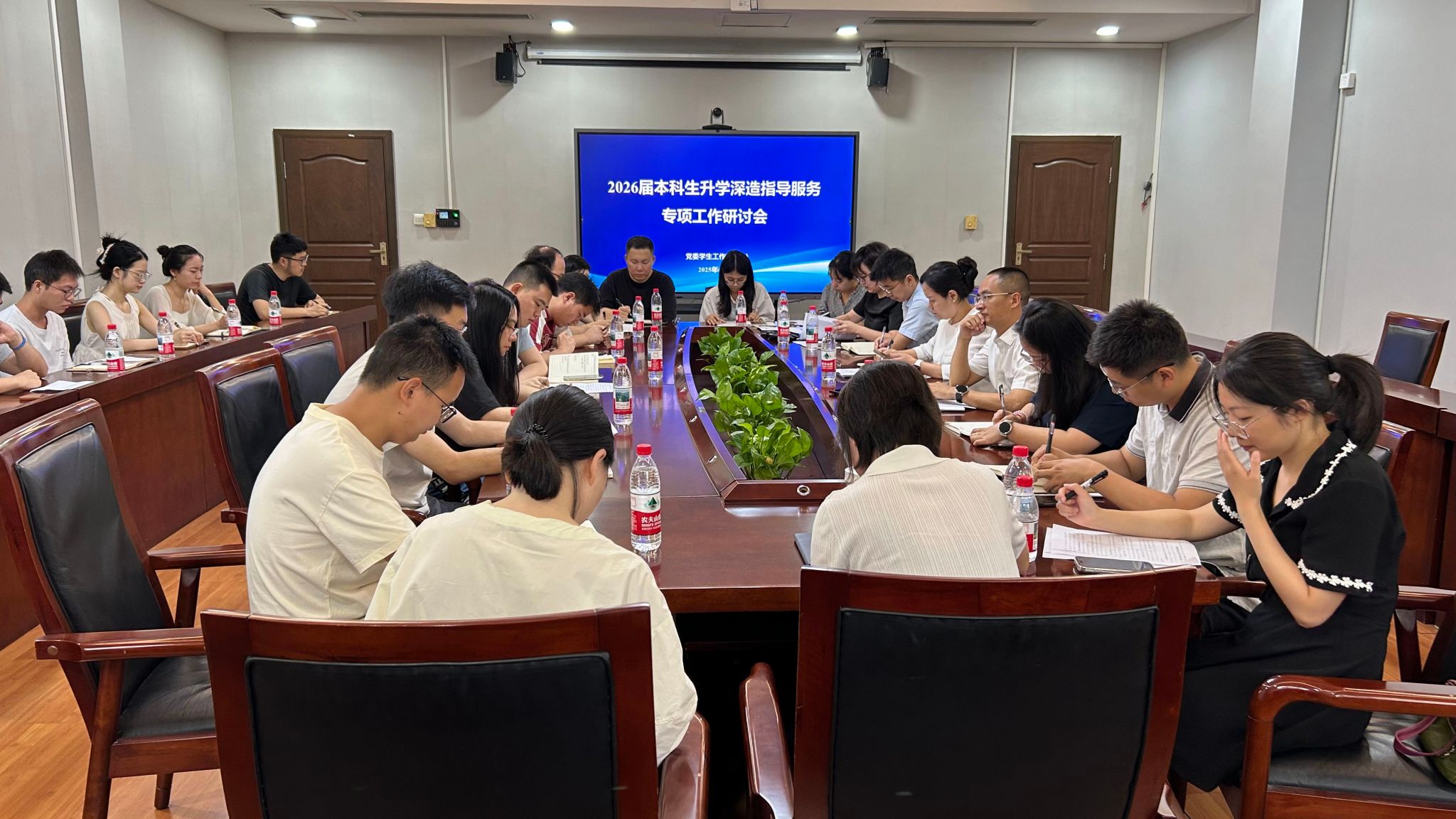 为对标教育强国建设要求,深入落实本科生升学深造2025届分析总结暨2026届工作推进会相关会议精神,6月20日,学工部召开2026届本科生升学深造指导服务专题研讨会,全体2026届本科生辅导员参会,学工部副部长陈俐宏主持会议。