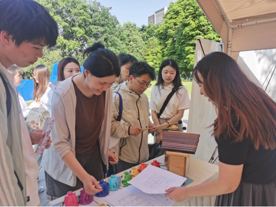 另一侧的“木语琴音”区域则充满灵动音符。参与者通过投掷骰子抽取乐谱,或使用木琴、鼠钟进行即兴演奏,将情绪转化为旋律。自由创作模式更是激发了师生们的表达欲,现场欢声笑语与悠扬琴声交织,传递出音乐疗愈的独特魅力。“没想到简单的乐器能释放这么多情绪,这种体验既有趣又有意义!”一名体验者感叹道。