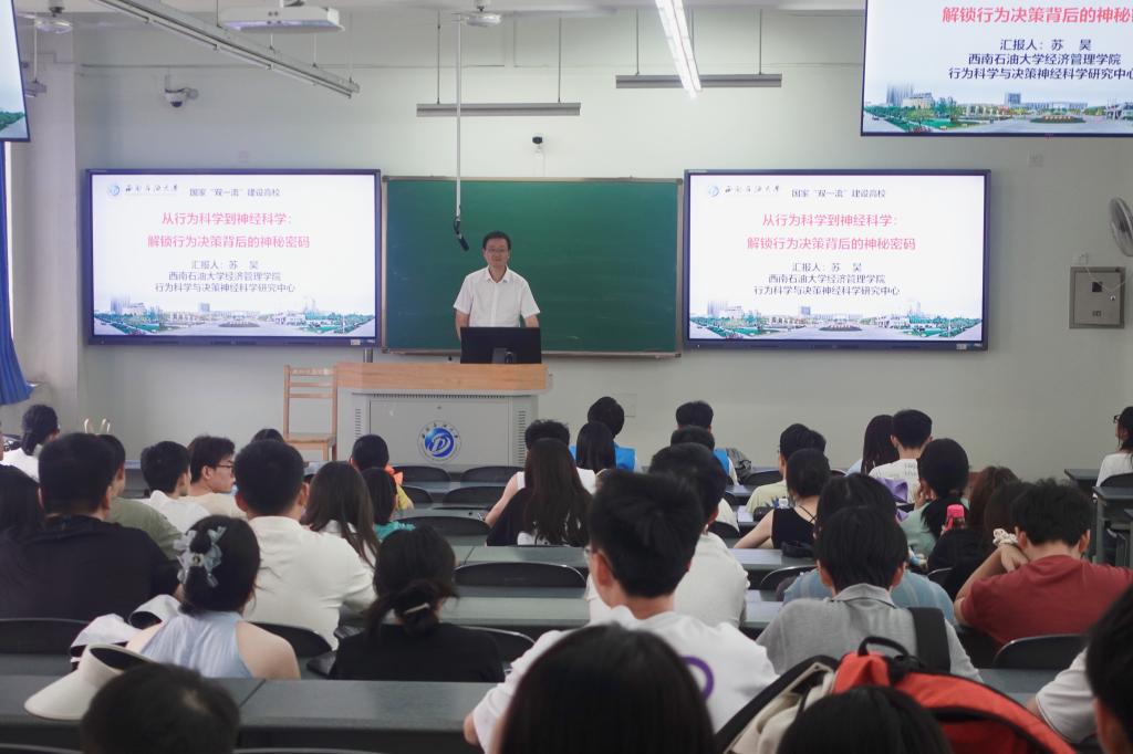 讲座伊始,苏昊教授以一个有趣的心理实验激发思考热情,结合经典与前沿研究实验剖析行为决策背后的心理机制。他在讲解“最后通牒博弈实验”时现场演示,让同学们直观感受决策中的心理博弈。通过生动案例,将复杂原理化为通俗知识,助力同学们揭开行为决策的神秘密码。