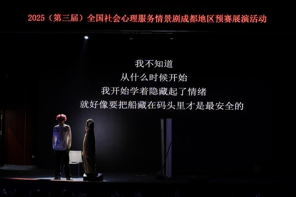 9月25日,2025(第三届)全国社会心理服务情景剧成都地区预赛成功举办,我校选送的剧目《长大》以全场第一名的优异成绩荣获“特别推荐剧目”晋级全国总决赛,我校选送的另一剧目《我的NPC人生》荣获“优秀推荐剧目”。