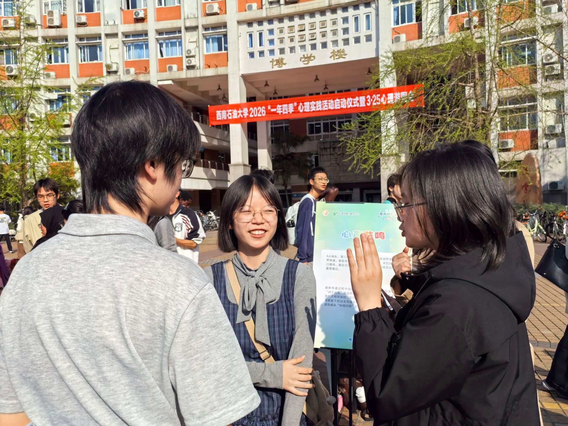 本次活动共计4500余人次同学参与,既是学校2026年全周期心理育人工作的正式启动,也是校院联动深化心理育人实践的创新探索,学校将以“一年四季”心理实践活动为抓手,丰富活动载体,拓展育人阵地,全方面守护同学身心健康。