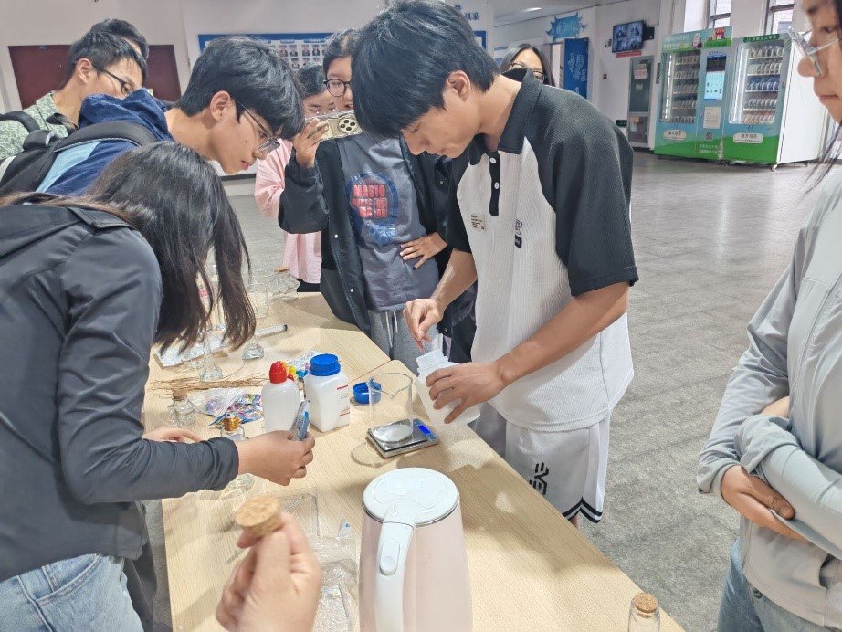 4月27日下午,化学化工学院心灵氧吧工作室在明德楼A区一楼学生活动大厅,举办“一盏春光,镜瓶云端”主题实践活动,40余名参与者通过亲手制作天气瓶,在溶液配制与结晶观察中感受温度变化的微观奇迹,以独特方式触摸春日时节的天气脉动。