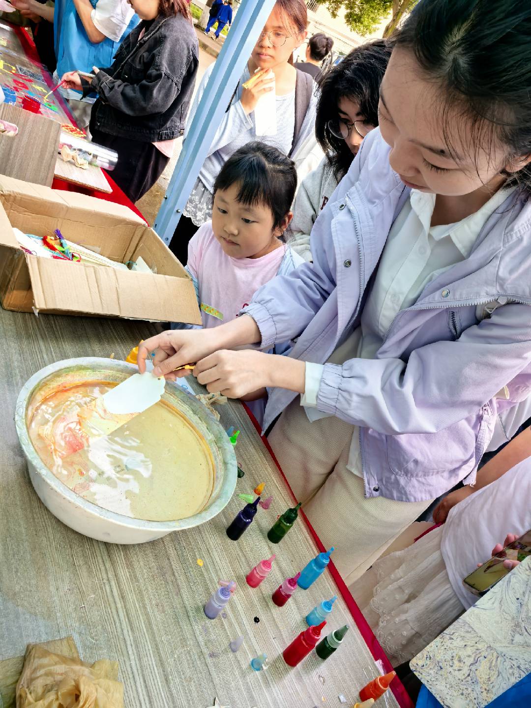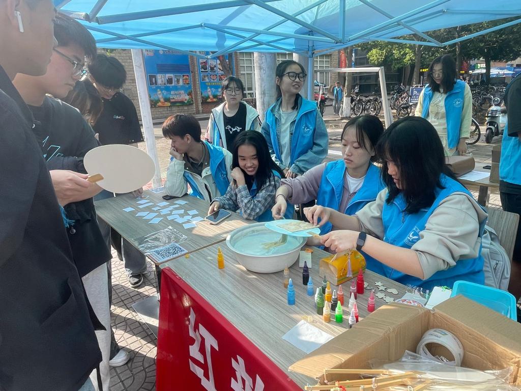 活动现场的气氛热烈而温馨。同学们在工作人员的指导下,纷纷发挥创意,沉浸在漆扇制作的过程中。有的同学将绚丽多彩的漆料巧妙搭配,绘制出梦幻般的星空图案;有的同学则以自然为灵感,勾勒出花鸟鱼虫的灵动姿态。创作中,同学们专注调配色彩,自发交流创意,现场欢笑声不断。在制作过程中,不少同学表示,平时学习任务繁重,很少有机会静下心来进行艺术创作。这次漆扇制作活动,让他们暂时卸下了学业的压力,全身心投入到色彩与线条的世界中,感受到了内心的平静与愉悦。