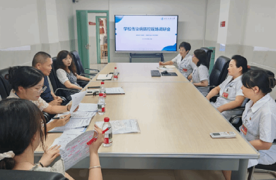 8月28日下午,新都区卫生健康局副局长魏婷婷一行来校专项调研校园传染病防控工作。校医院院长张继红在调研会上详细汇报了近期学校针对蚊媒传染病开展的系列防控举措。
