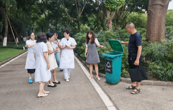 随后,调研组深入校园重点区域开展实地督导,先后巡查梦溪湖水体环境、主干道卫生设施及食堂等关键点位,对校园环境卫生管理提出专业指导意见。