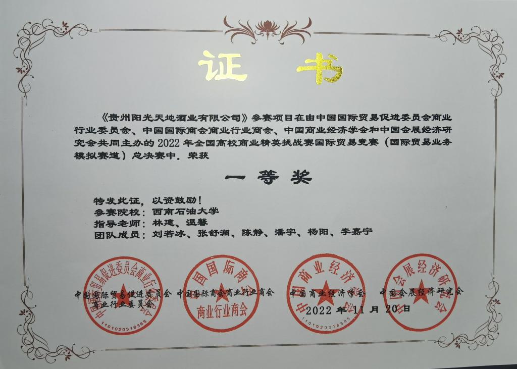 近日,2022年全国高校商业精英挑战赛国际贸易竞赛在线上举行,我校国际经济与贸易专业2019级的刘若冰、张舒澜、陈静、潘宇、杨阳、李嘉宁组成的队伍获得一等奖,林建、温馨获优秀指导教师称号。
