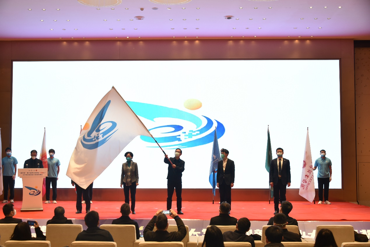 下一届将在四川师范大学、成都航空职业技术学院举行,图为会旗交接仪式