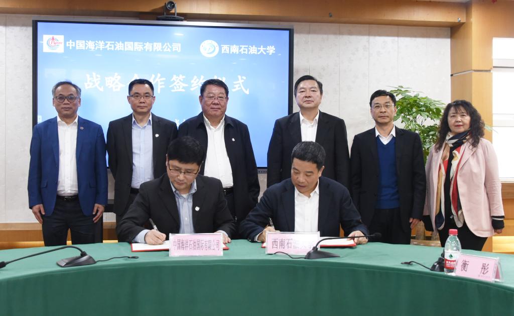 3月16日下午,中国海洋石油有限公司(以下简称“中国海油”)总裁夏庆龙,中海石油国际能源服务(北京)有限公司党委书记、董事长刘永杰一行来校访问。校党委书记陈永灿,校党委副书记、校长张烈辉,校党委副书记、校工会主席衡彤,校党委常委、副校长郭建春与夏庆龙一行进行了座谈,双方签署了战略合作协议。张烈辉主持座谈。