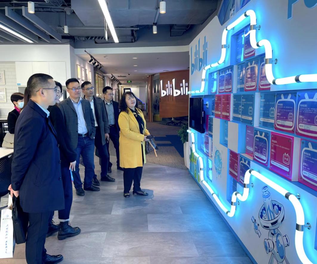 在上海哔哩哔哩总部,工作组在公司人力资源经理晨晓的陪同下参观了公司运行情况并与公司领导进行了座谈。衡彤说,B站是中国年轻世代高度聚集的文化社区,是Z世代的网络聚集地。通过实地参访更加深入地了解了B站的企业文化和工作氛围,公司年轻化的发展趋势和轻松活跃的企业精神面貌让大家耳目一新。经过十年多的发展,B站围绕用户、创作者和内容,构建了一个源源不断产生优质内容的生态系统。学校希望加强与公司在信息技术、艺术和管理类毕业生的招聘、人才培养和产教融合等方面的深度合作。晨晓表示,公司接下来将与学校相关学院加强联络,共同商议校企深度合作的落实落地事宜。