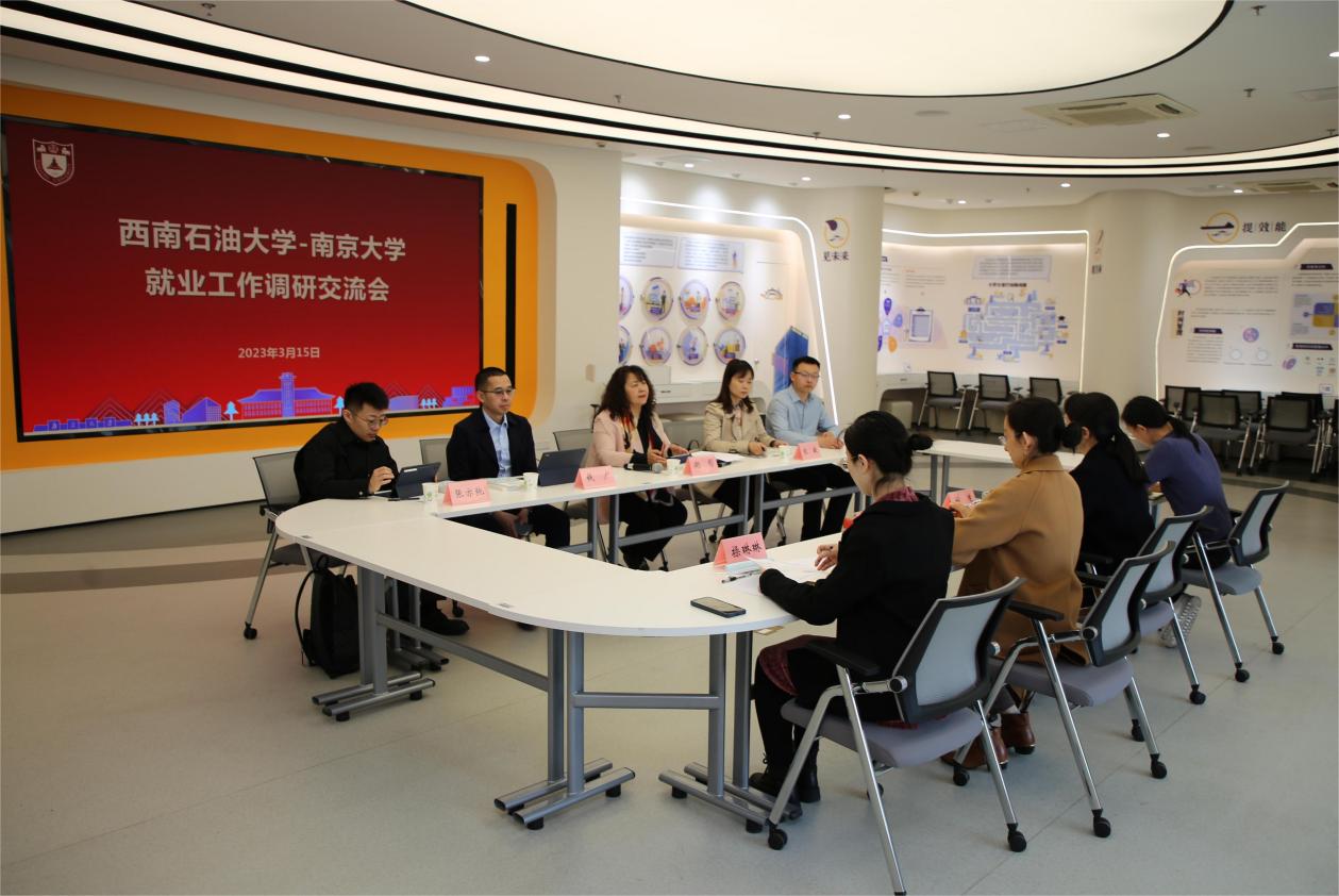 在南京大学,工作组调研了该校在学生职业发展与就业指导、职业生涯规划大赛等学生教育辅导活动的组织、职业生涯课程体系建设和生涯体验馆建设等方面的情况,与校党委常委、副校长张峻峰举行了座谈。双方均表示希望加强两校在职业生涯规划和就业指导方面的师资、课程和活动等方面的共享机制,共同推进构建中国特色大学生职业生涯发展教育理论体系的建设工作。
