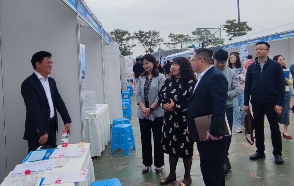 校党委副书记、校工会主席衡彤十分关心毕业生就业,专门到科技园企业柜台了解情况,指导双选。