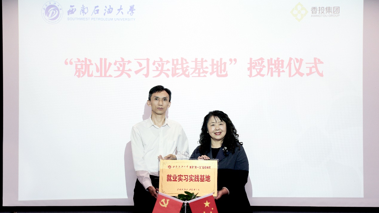 衡彤向成都香城投资集团授“西南石油大学就业实习实践基地”牌