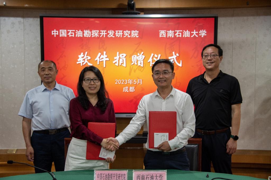 双方签订了软件捐赠协议。祝效华代表学校向中国石油勘探开发研究院颁发了捐赠证书。