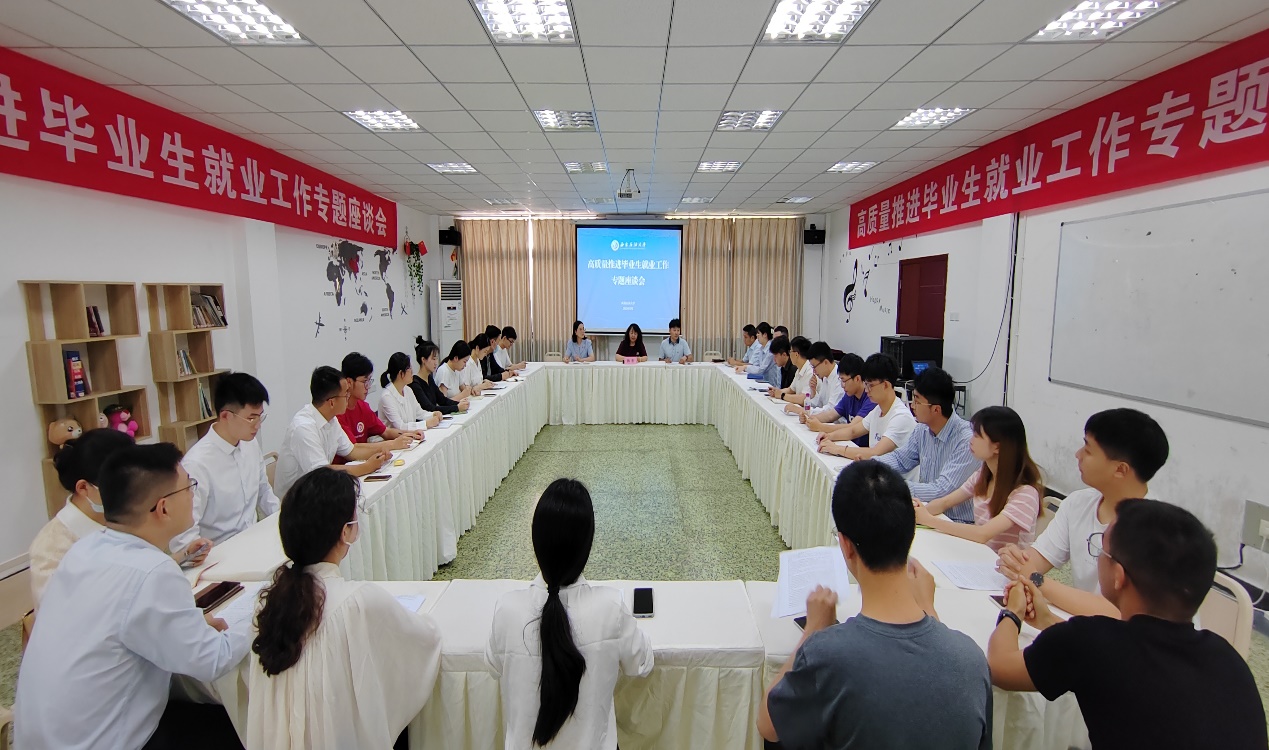 招生就业处相关人员、毕业班辅导员代表、毕业生代表、低年级学生代表参加了座谈交流。