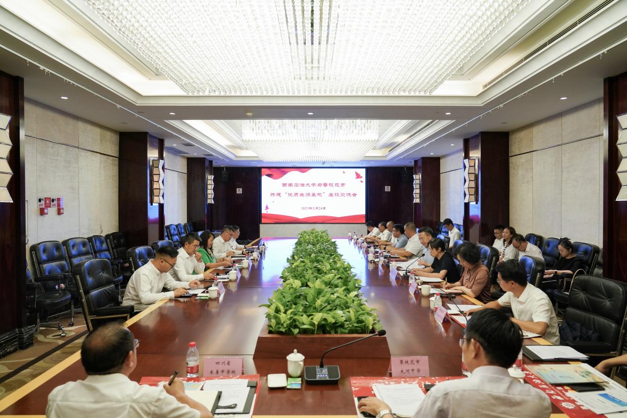 衡彤在座谈交流活动中介绍了我校学科建设、科技创新、人才培养、就业创业、心理服务、生涯指导等方面的工作。她说,西南石油大学是国家“双一流”建设高校,希望各中学输送更多优质生源,也诚挚邀请各用人单位来校选才。期间,衡彤带队走访了雅化锂业(雅安)有限公司 、厦钨新能锂电新材料公司,并为攀枝花钢城集团公司、凉山州城投集团有限公司等8家企业授牌“西南石油大学就业实习实践基地”,为雅安中学、西昌市第一中学、攀枝花第七高级中学等16所中学授牌“西南石油大学优质生源基地”。3个市州的各级领导和职能部门对衡彤一行的到来表示热烈欢迎,并表示要进一步强化校地合作,创新校校合作、校企合作形式,为双方携手共进和人才培养提供更广阔的平台。